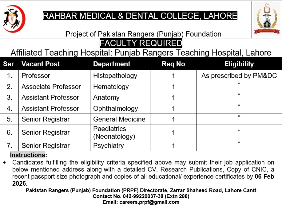 - Punjab Rangers Teaching Hospital (at walking distance) is affiliated with RMDC